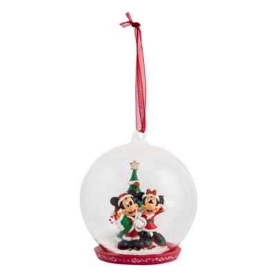Disneyland Paris Christmas Ornaments - Disneyland Paris Mickey And Minnie Mouse With Christmas Tree Glass Globe Bauble Shopdisney Uk